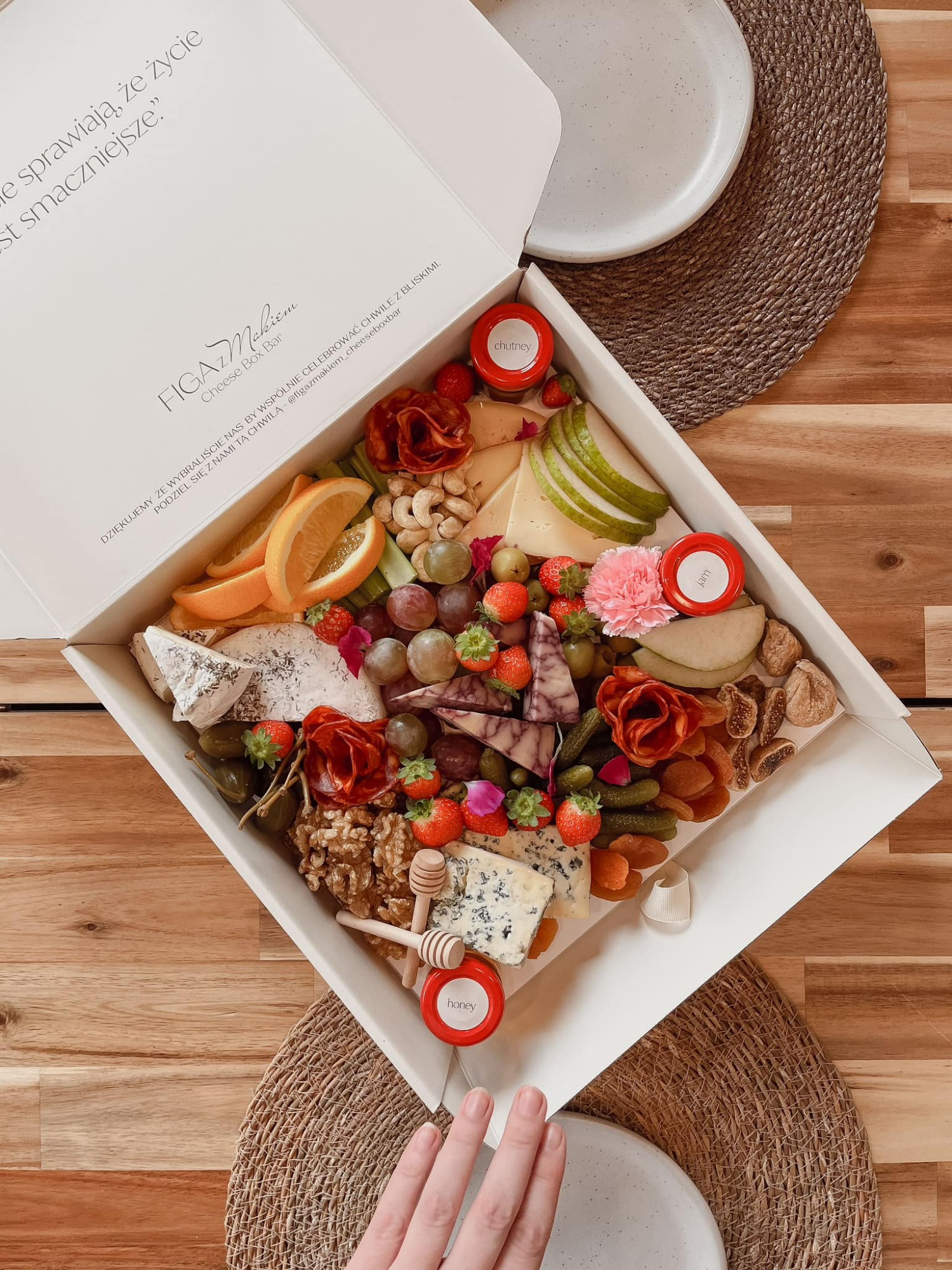 FIGA Z MAKIEM to więcej niż catering. To przestrzeń, w której smak spotyka estetykę, a codzienne chwile stają się małymi rytuałami. Tworzymy boxy, stoły i kompozycje, które opowiadają o prostocie, bliskości i przyjemności dzielenia się. Każdy element – od dojrzałego sera po gałązkę rozmarynu – ma tu swoje miejsce i znaczenie.