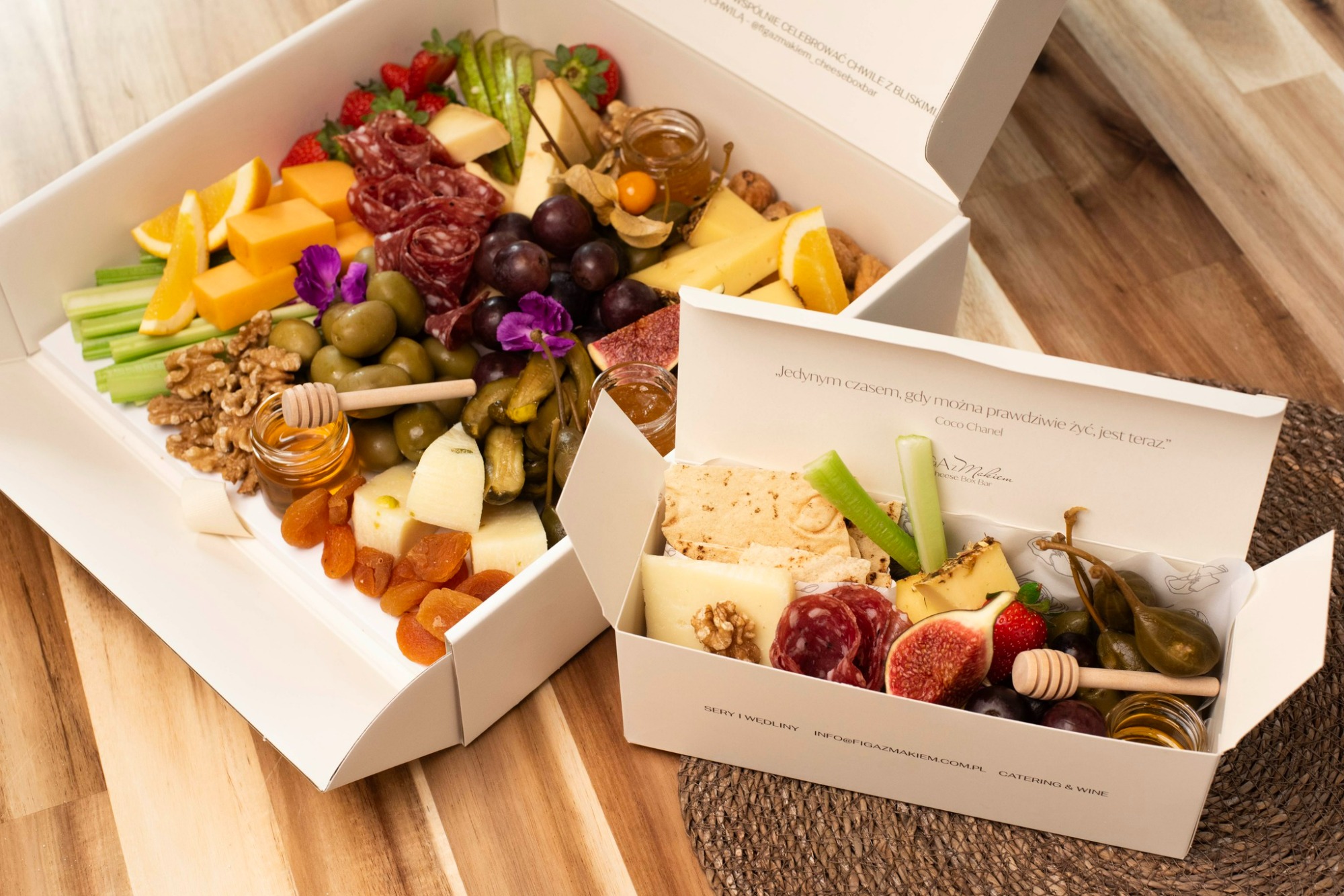 Dziś FIGA Z MAKIEM łączy w sobie lifestyle bar, przestrzeń spotkań i pracownię cateringu premium, w której powstają nasze autorskie Cheese Boxy, Grazing Table i Gift Boxy. Wierzymy, że to, co piękne, nie musi być skomplikowane – wystarczy dobra jakość, uważność i serce włożone w każdy gest.